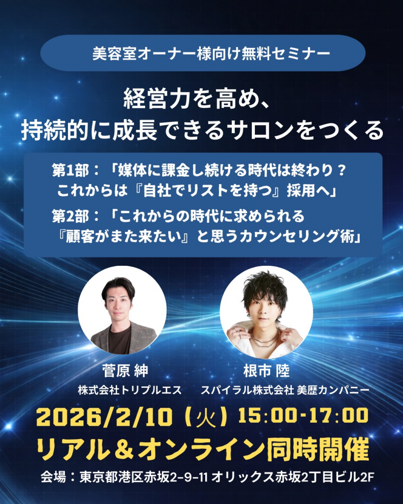 サロンの持続的な成長のために必見の内容です。ぜひ奮ってご参加ください。