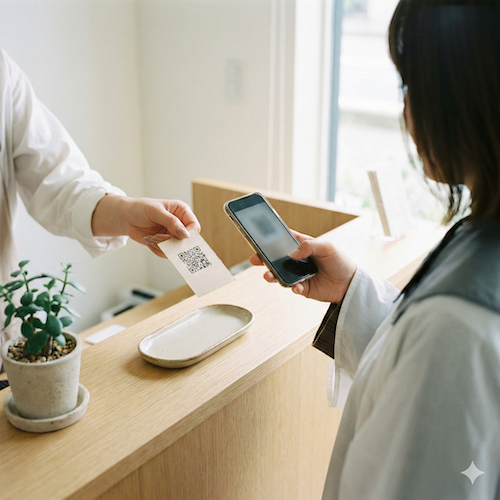 - 受付にQRコードを設置(紙でもOK)