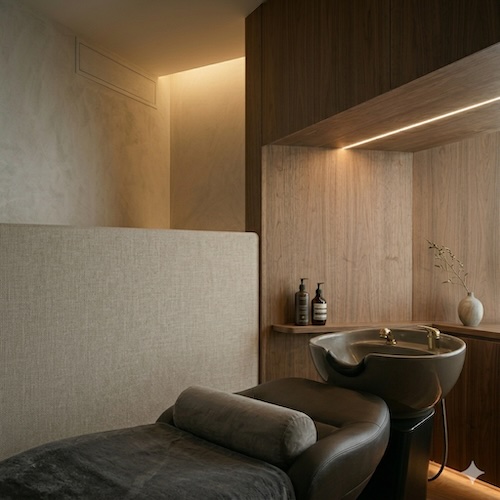 シャンプーブースは、サロンの中でもっとも感覚評価が厳しい場所です。だからこそ、照度、色温度、演色性、配灯、換気、音、意匠整理まで、細部を計算して設計する価値があります。