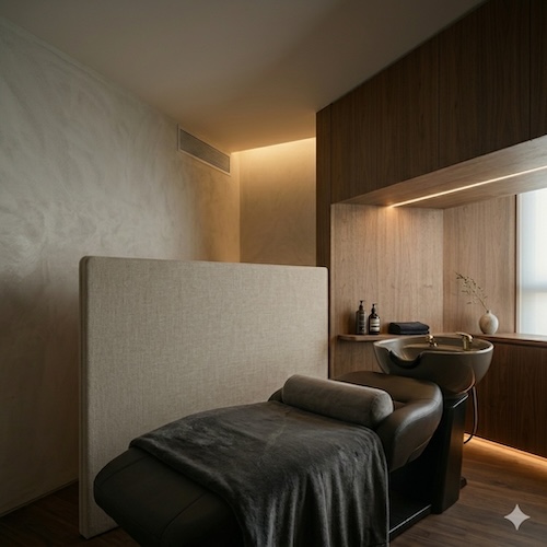 特に、ヘッドスパやリラクゼーションメニューを強みにしたい場合、シャンプーブースは単なる施術スペースではありません。お客様に「またここで癒やされたい」と感じてもらうための体験装置です。居心地の良さは感覚だけで作るのではなく、照明、音、空気、見た目の整理を数値と設計で組み立てることが重要です。