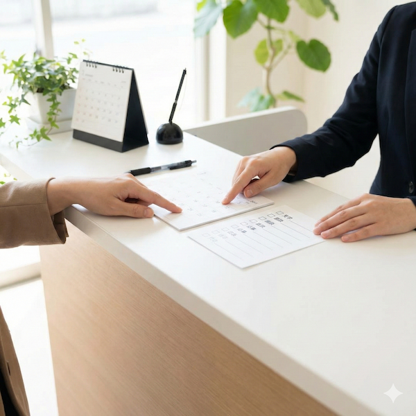 - 1日の流れ:朝〜終業、休憩、予約の組み方