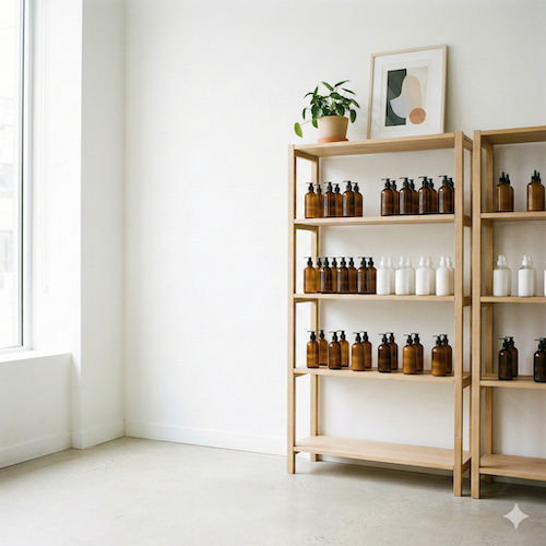 - 物販の小棚(ヘアケア・スタイリング剤)